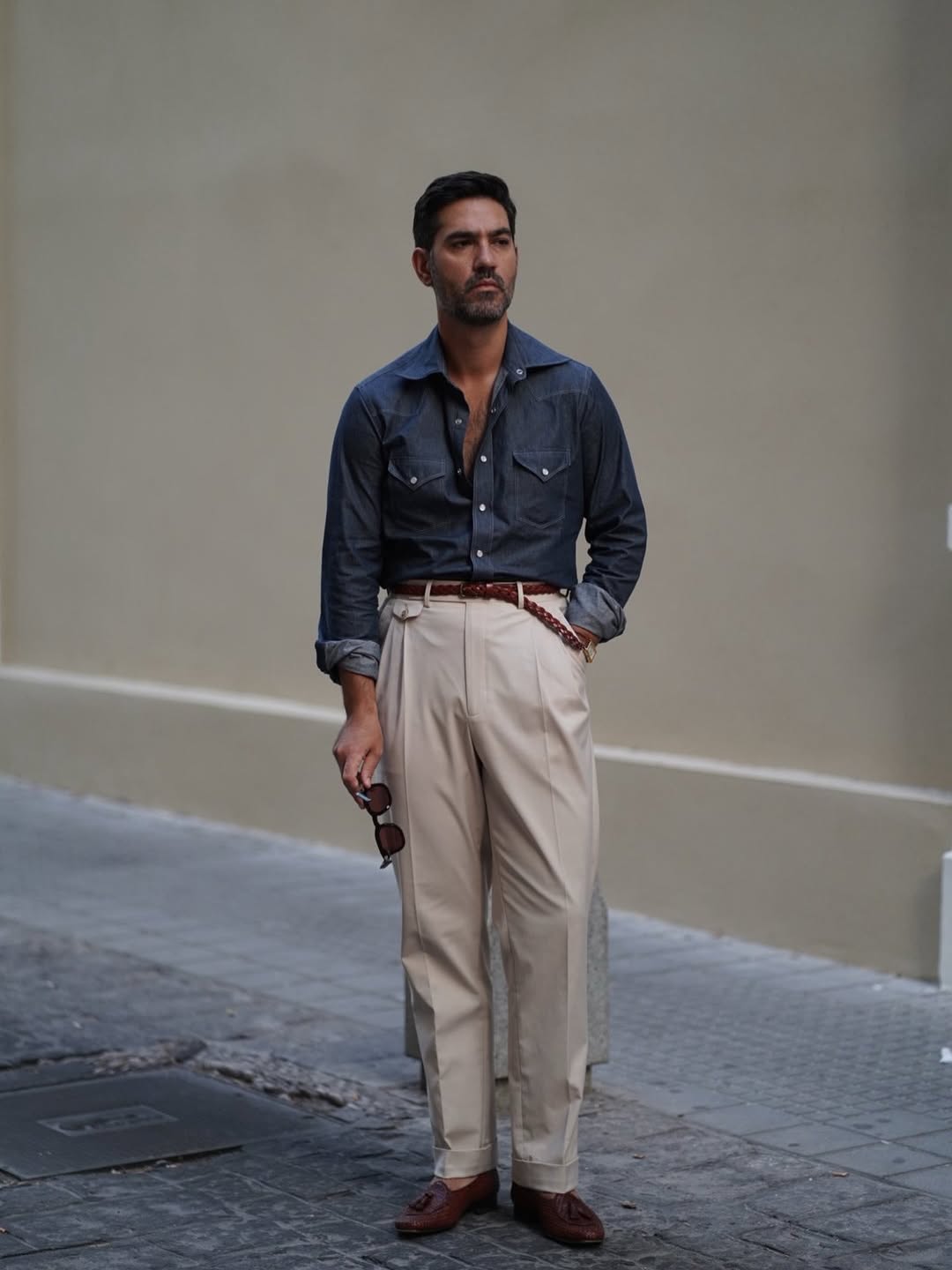 Think a chambray shirt with denim or chinos. The trick is contrast: mix textures and tones so the outfit feels layered, not flat. Add minimalist sneakers or casual leather shoes to keep things grounded.