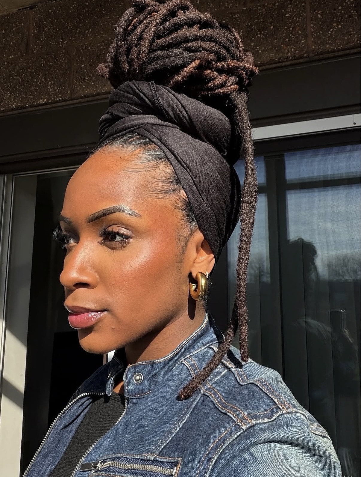 Headwraps introduce color, texture, and personality while also serving as a protective styling option. Whether loosely tied or fully wrapped, this look allows for creativity while remaining practical. It is especially useful on days when you want a fresh look without manipulating your locs too much.