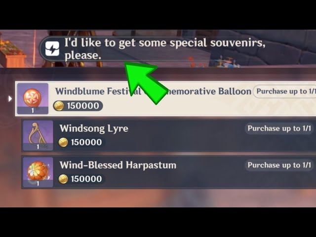 The souvenir shop in Mondstadt has an ‘I’d like to get some special souvenirs, please’ option, through which gamers can access three event-exclusive items.